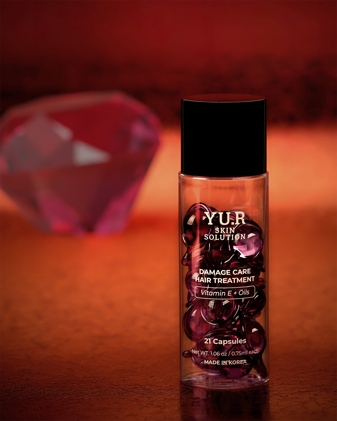 캡슐과 같은 톤의 다이아몬드를 3D로 흐릿하게 배치했습니다.