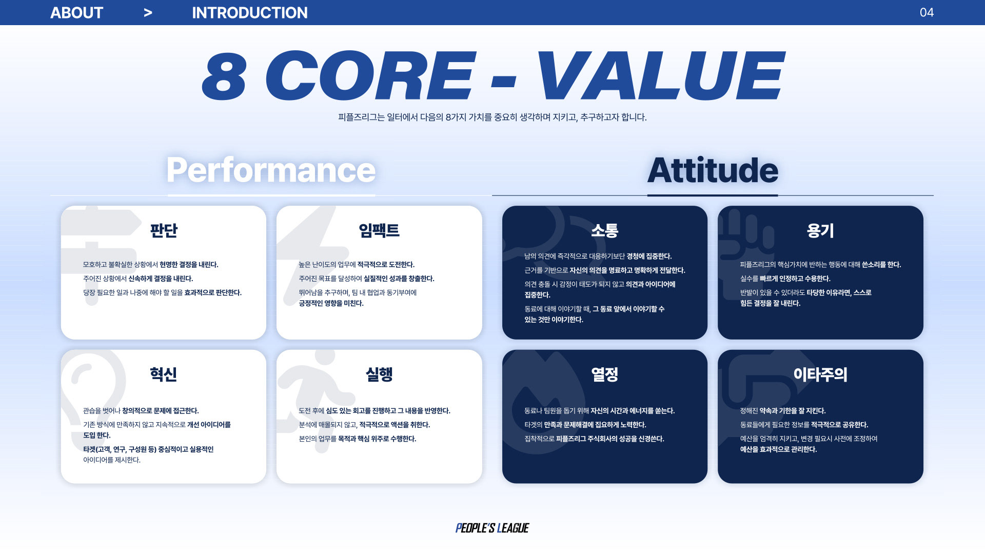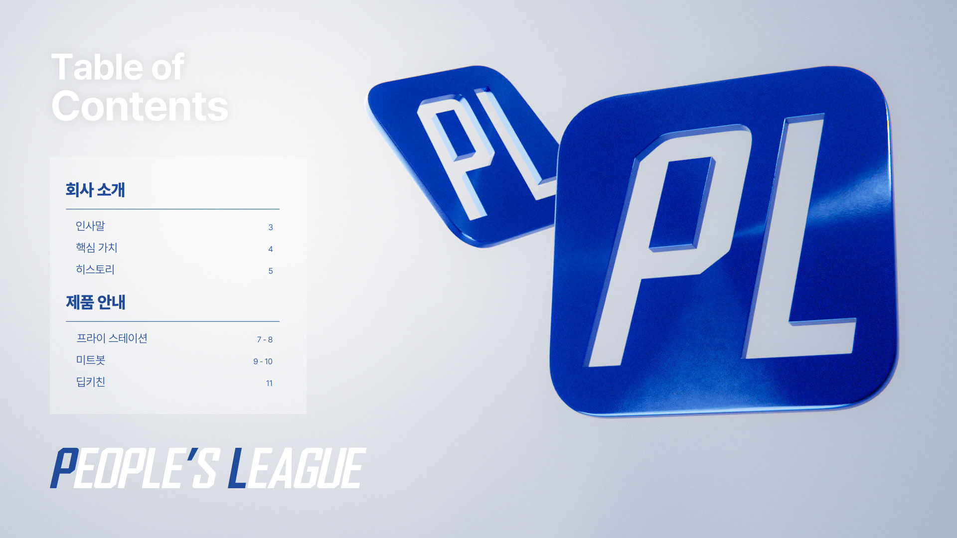 People's League 주식회사의 회사소개서를 제작했습니다.