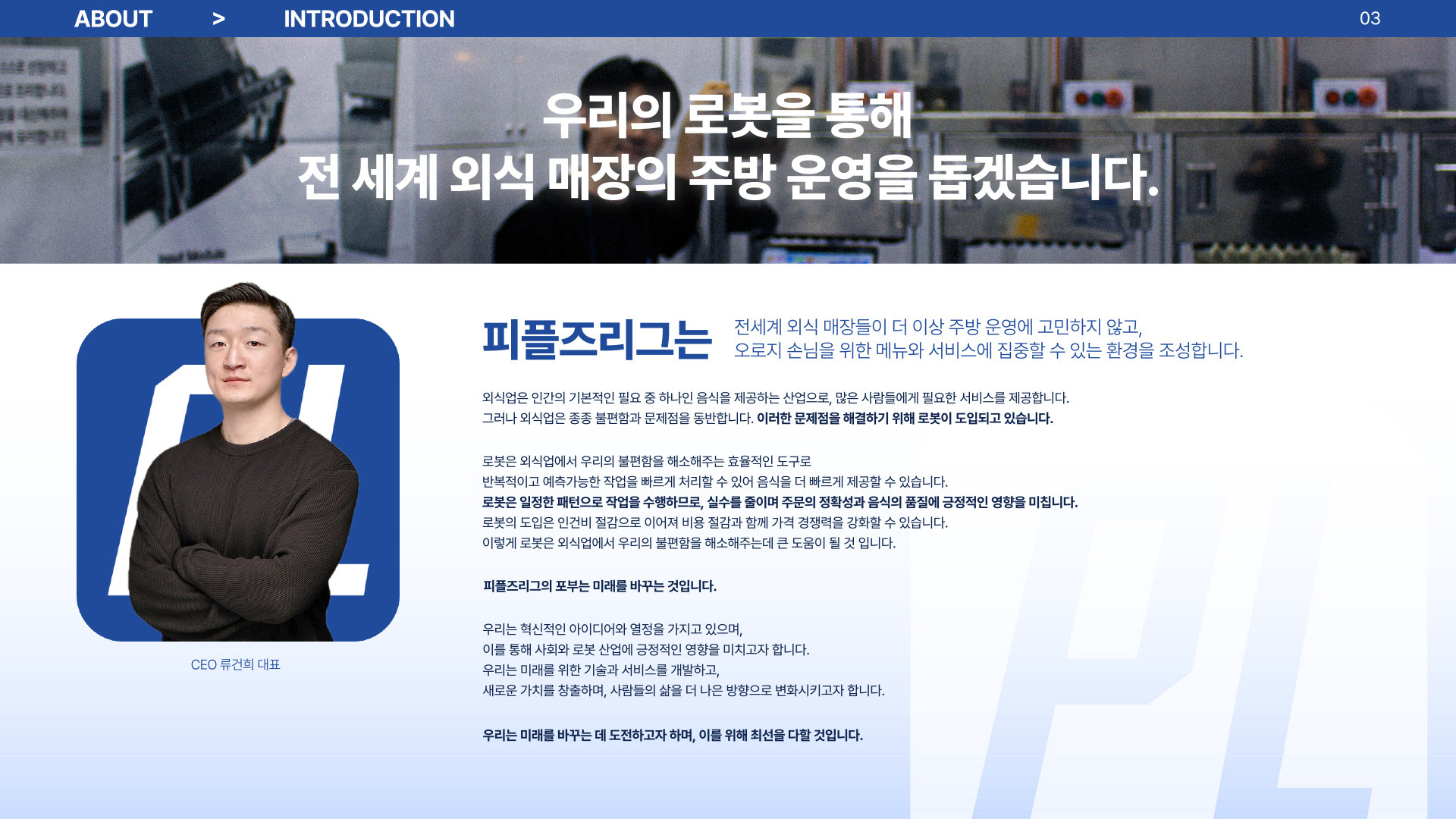 회사소개서의 디자인을 활용하여 회사 공식 홈페이지를 디자인했습니다.